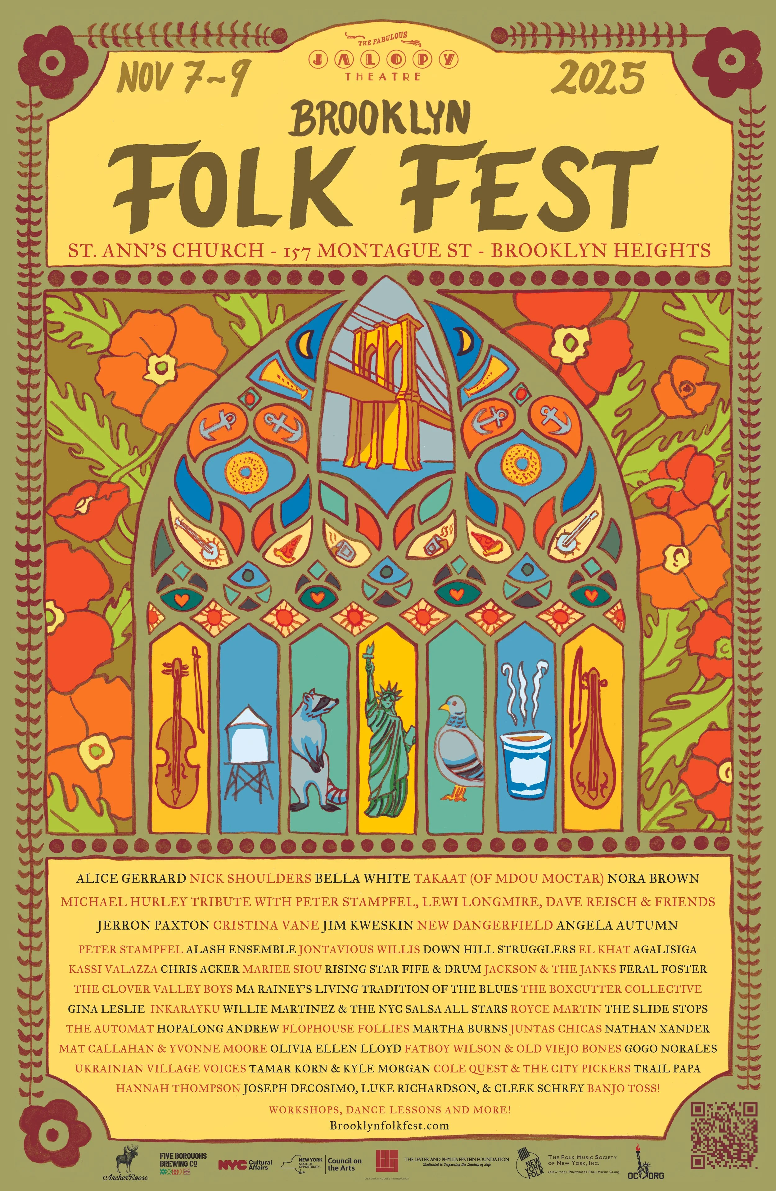 Mamady Kouyate and his Mandingo Ambassadors ● Nora Brown ● Radio Jarocho ● Anne Waldman ● Feral Foster ●La Cumbiamba NY● Jackson Lynch●Piedmont Blūz● Julia Patinella●Trio Litvakus●Kyle Tigges ●The Lucky Five●Marcus Jade● Eleonore Weill ● Ukrainian Village Voices Boxcutter Collective Eva Salina & Peter Stan Tamar Korn & a Kornucopia ● The Jalopy Chorus